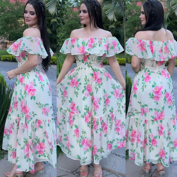 Vestido al Hombro con Flores